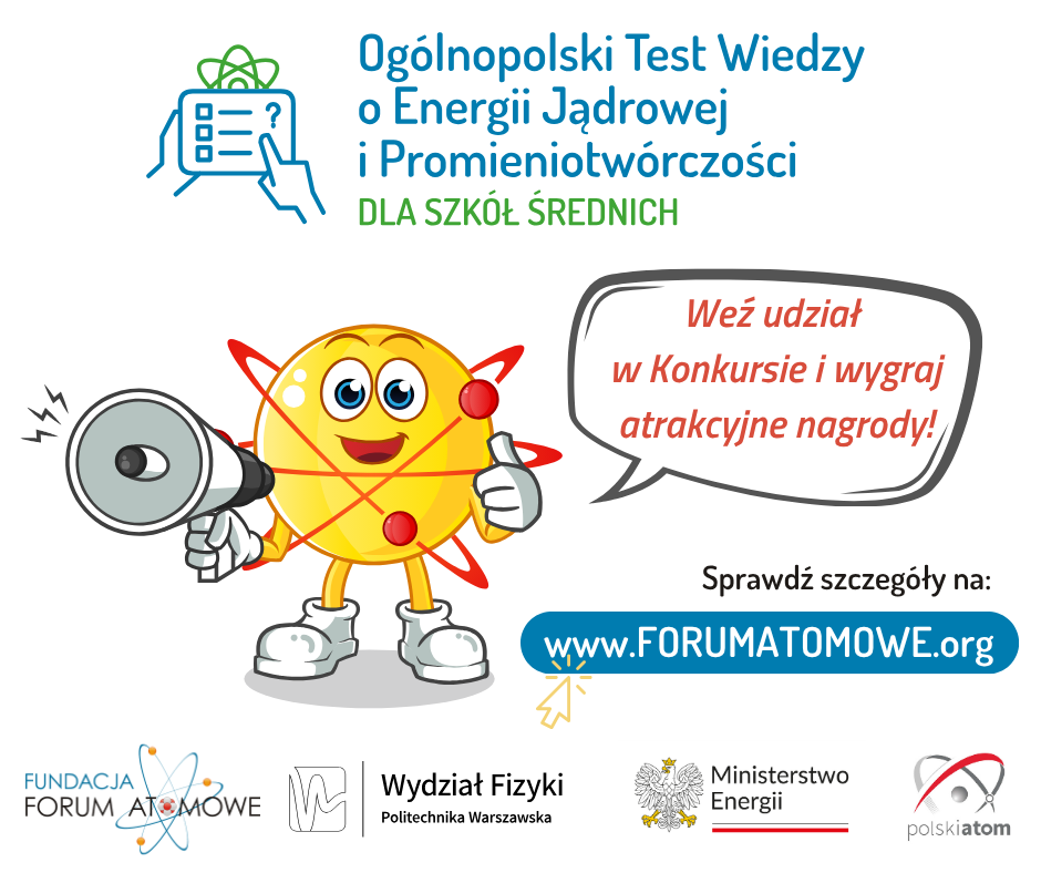 Fundacja FORUM ATOMOWE ogłasza rozpoczęcie dwóch ogólnopolskich konkursów edukacyjnych dla młodzieży, których celem jest popularyzacja wiedzy o energii jądrowej i promieniotwórczości: